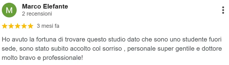 “Ho avuto la fortuna di trovare questo studio dato che sono uno studente fuori sede… dottore molto bravo e professionale”