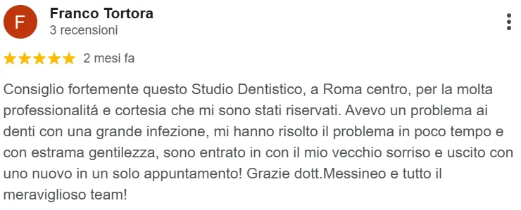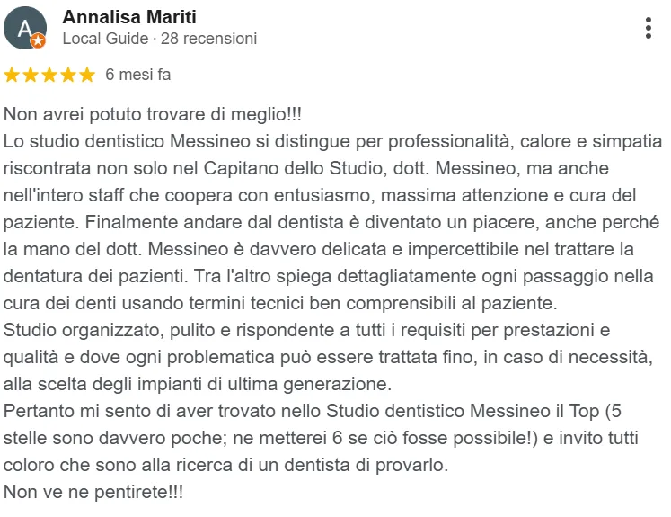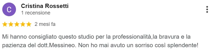 “Frequento lo studio Messineo da molti anni. Andare dal dentista è diventato un piacere!”